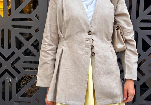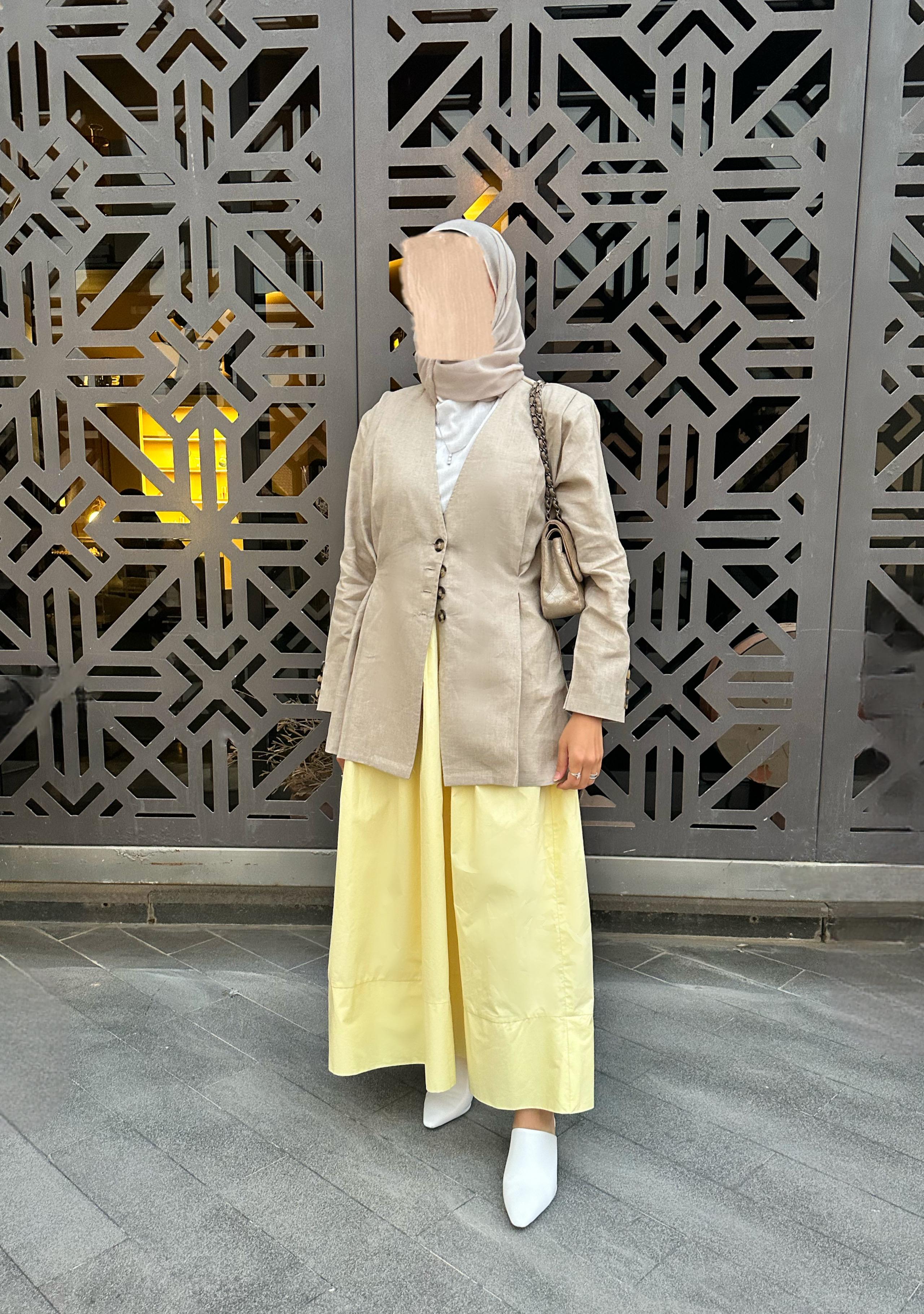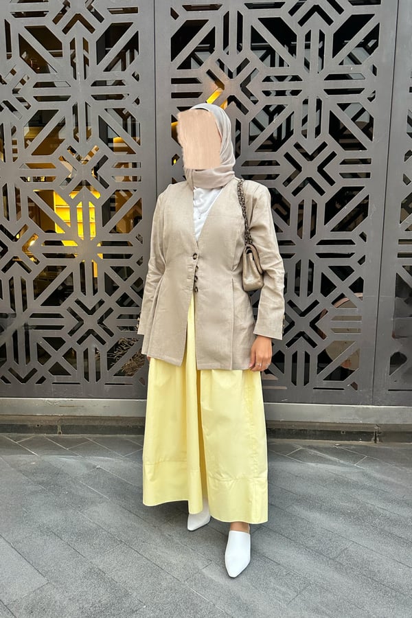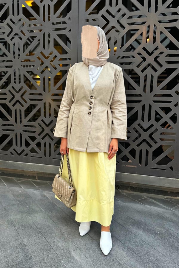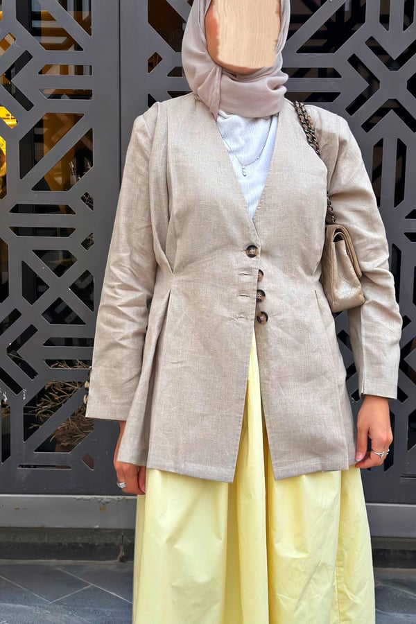 يوجد سير مرن بالتنورة عند منطقة الخصر البليزر: خام قطن لنن